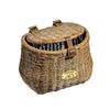 A lidded basket for your handlebars! Inspired by the classic fishing creel, this natural rattan basket keeps all of your belongings secure as you ride. Attaches to front handlebars or the rear rack with two leather straps.